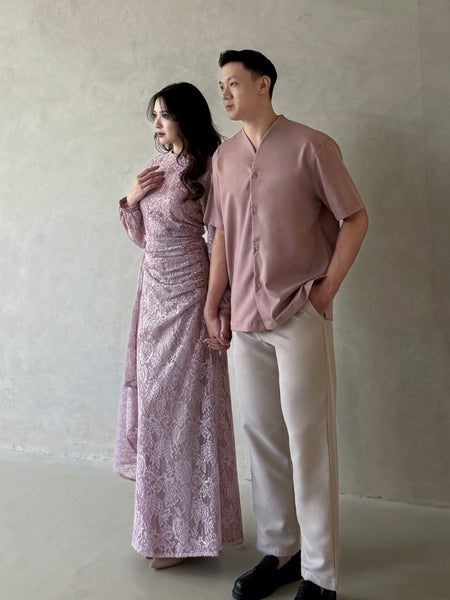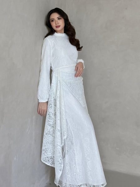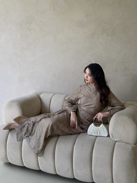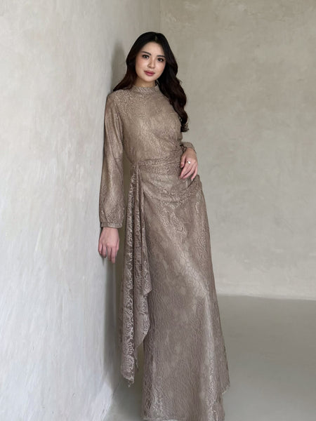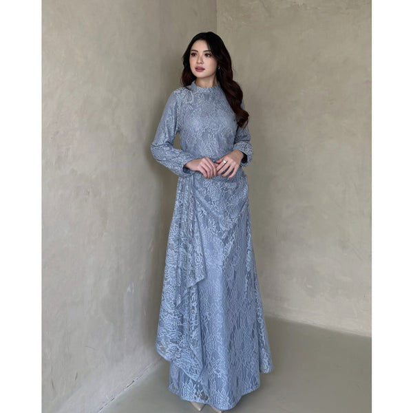 Kadaka D-0269 Maxi Lace Dress with Drapery Detail | Dress Wanita Panjang Detail Brukat