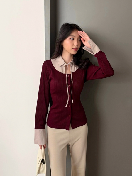 Kadaka T-0554 Long Sleeve Pleats Shirt Top with Collar Detail | Atasan Lengan Panjang Wanita
