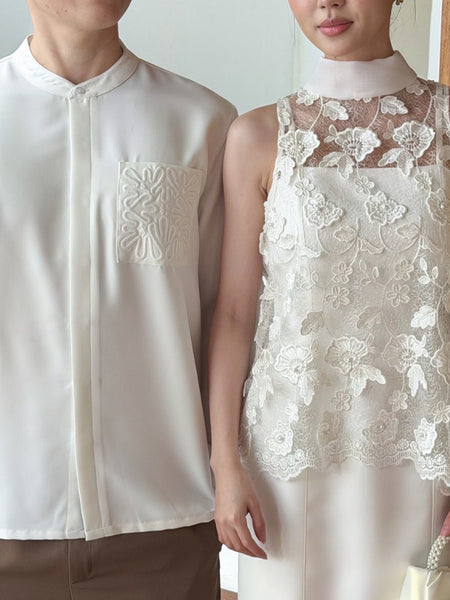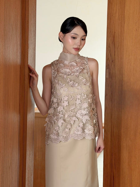 Kadaka T-0563 CNY Imlek Cheongsam Halter Brocade Top with Chiffon Necktie | Atasan Wanita Brukat Tanpa Lengan