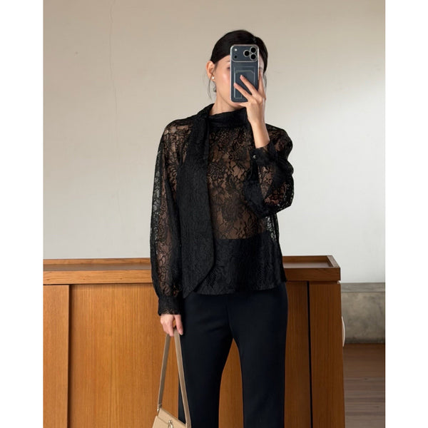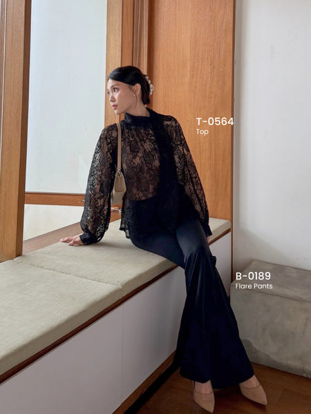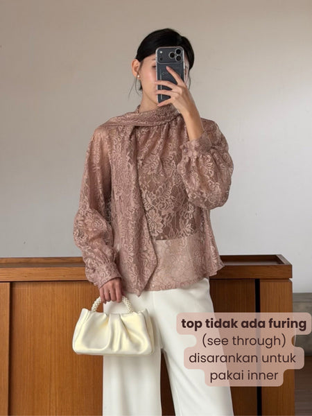 Kadaka T-0564 CNY Imlek Cheongsam Long Sleeve Lace Top with Neck Scarf | Atasan Lengan Panjang Brukat Wanita