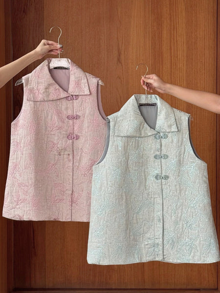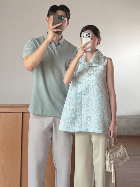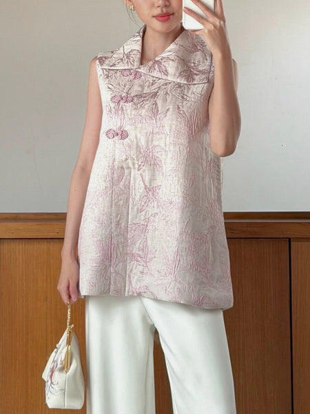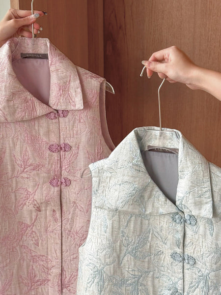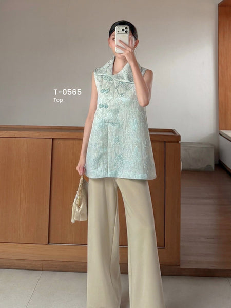 Kadaka T-0565 CNY Imlek Jacquard Sleveeless Top with Cheongsam Buttons | Atasan Tanpa Lengan Wanita